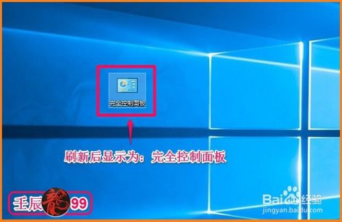 我们把新建的文件夹重命名为:完全控制面板.{ED7BA470-8E54-465E-825C-99712043E01C},刷新桌面,刷新以后,新建文件夹图标转换为完全控制面板图标;