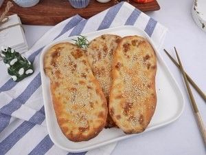 鲜肉锅盔,又叫锅魁、干馍,是陕西省关中地区以及甘肃省武威地区城乡居民喜食的地方传统风味面食小吃。饼大直径二尺外,又圆又厚像锅盖。
