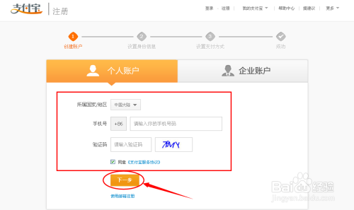 首先,需要注册一个支付宝账户。请使用自己的手机注册。