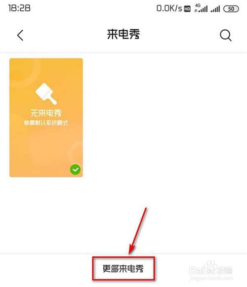 在打开“来电秀”界面中,如果没有设置过,只有默认的无来电秀。点击“更多来电秀”打开动态壁纸,在动态壁纸中,选择来电秀。