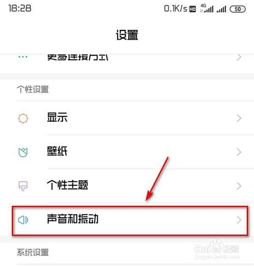解锁手机,依次选择"设置"—“个性化设置”—“声音和振动”,打开“声音和振动”界面。