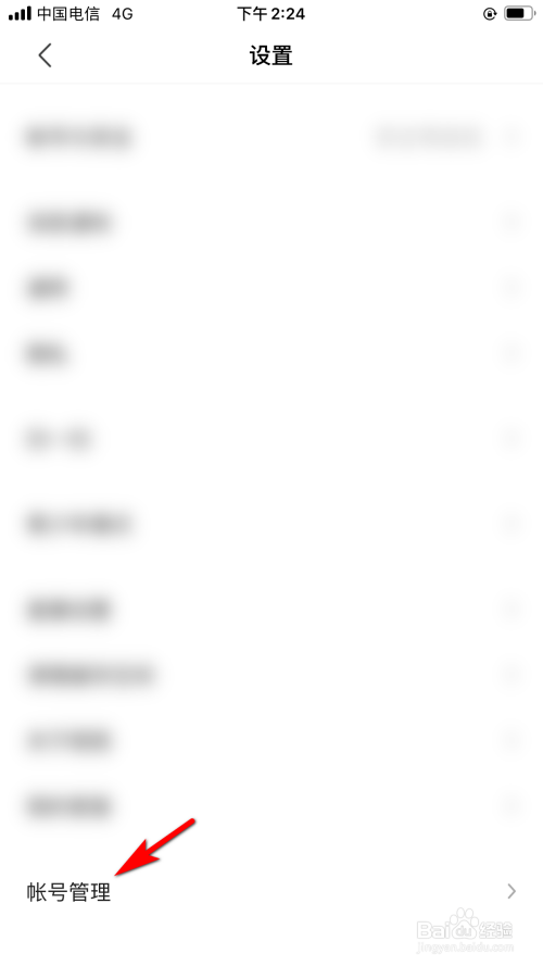 在设置中,点击帐号管理的选项。