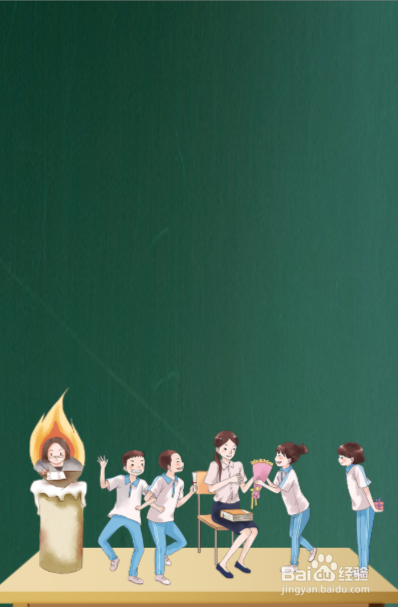 第三步,在课桌面上,画上学生给老师献花的画面