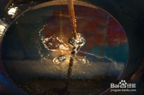 锅中倒大豆油,将一根筷子插入油中,筷子周围泡出大泡,油温就合适了。