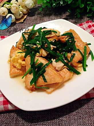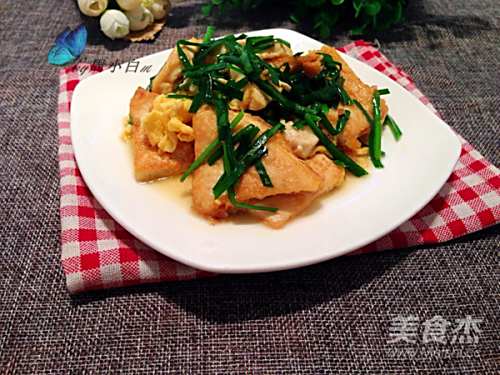 加入煎好的豆腐,加少许生抽,与少许盐翻炒匀即可出锅