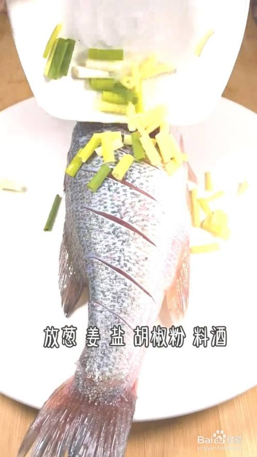 鲈鱼改刀后放入容器中,加入葱姜,盐,胡椒粉,料酒。腌制十分钟