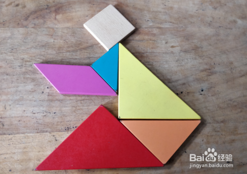 摆上余下的小三角形,放在正方形的右上挨着,如图。这样就拼组好了。