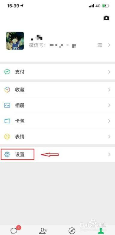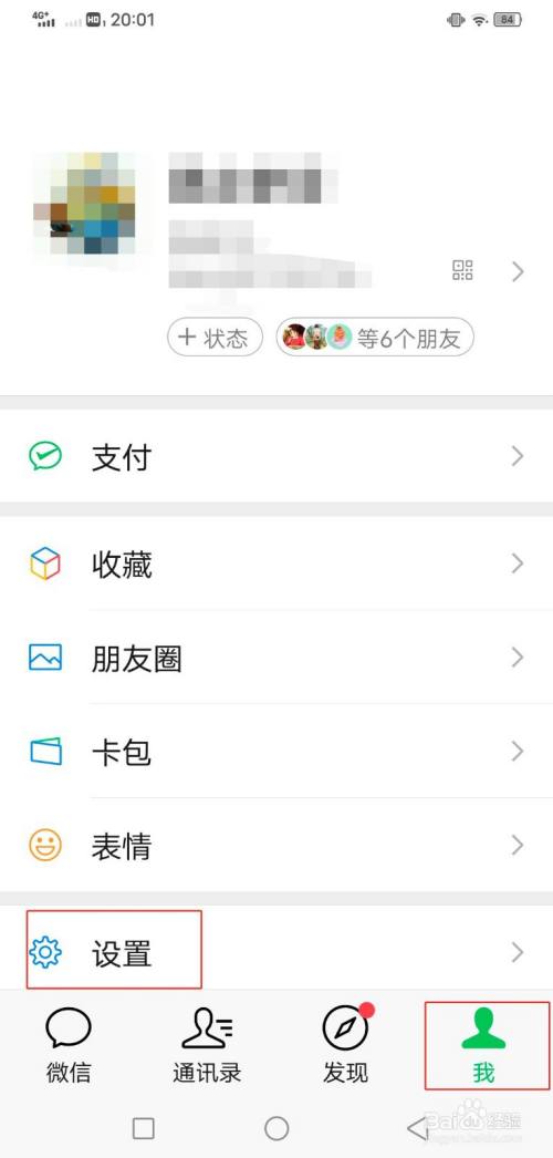 打开微信,点击我和点击设置