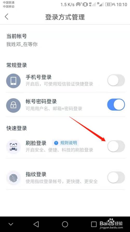 页面依据指引点击“刷脸登录”开关标识,即可成功开启度小满金融APP刷脸登录。
