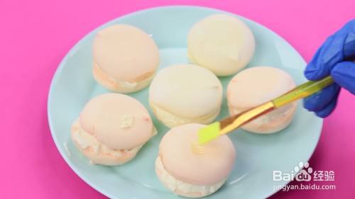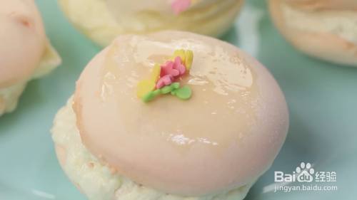 将弄好奶油的小饼干装饰起来。