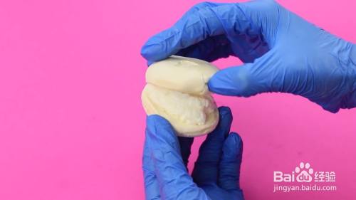 在其中一瓣上涂抹上奶油,然后盖起来。