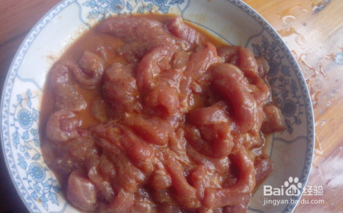 猪瘦肉丝放盐 鸡精 生抽 料酒 淀粉抓匀,腌10min。