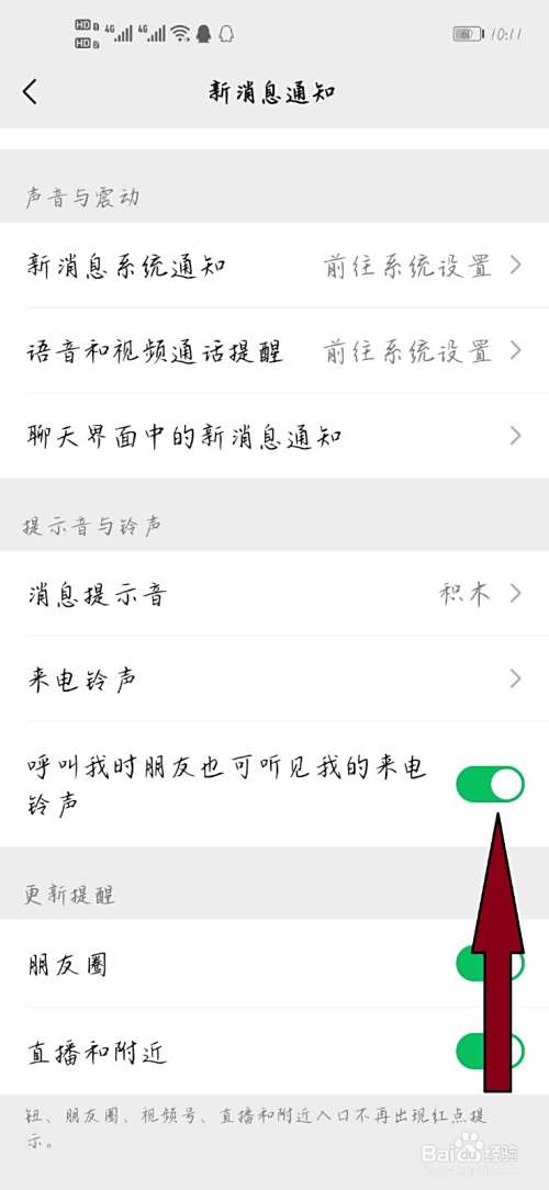 返回新消息通知页面,点击开启【呼叫我时朋友也可以听见我的来电铃声】即可。