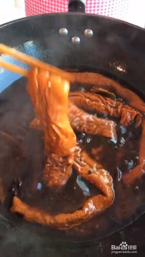 接下来再在锅中加入蚝油,红烧酱油,盐,鸡精,最后放入大肠,扣盖炖九十分钟即可。