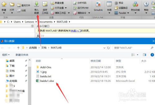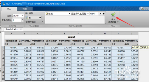 matlab经常被用于做数据可视化,数据分析等,这就需要数据的导入,点击如图所示位置中的导入数据,然后选择你要导入的数据的文件,然后进行如图所示的操作,即可导入数据。