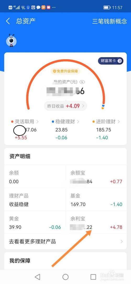 或者,打开支付宝,点击 右下角 我的——顶部 总资产——中间 余利宝