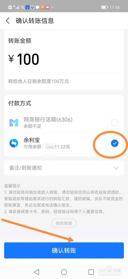 默认的付款方式,是网商银行活期。我点击 余利宝,再点击 确认付款