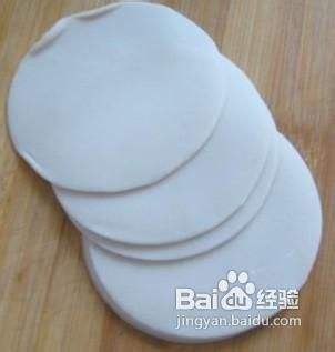 4.取出饺子皮。把肉馅包如饺子皮中。这样白菜肉馅饺子就做好了。
