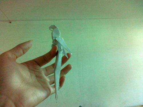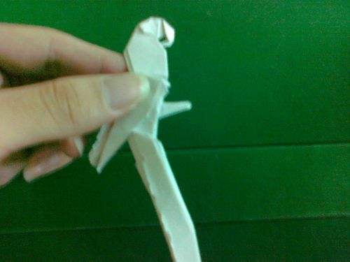 34看着尾巴,往外拉,不要用太大力,否则纸会烂得。像我用的纸是素描纸,那个难折啊!尤其是细节,所以纸要选择好点的