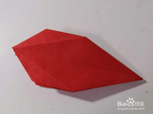 取一张正方形红色折纸,折叠成米字型后向内收呈正方形。