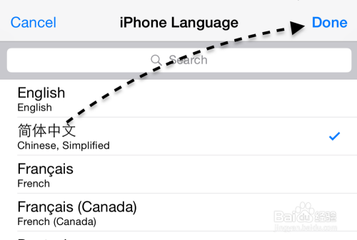 接着请点击选择“简体中文(Chinese Simplifiled)”一栏,再点击 Done 按钮。