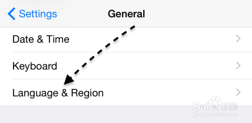 在 General 列表中,找到 Language & Region 一栏,点击进入。