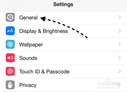 接下来请在 Settings 列表里,点击 General 一栏,如下图所示