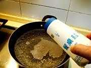 16在烘烤猪柳时可制作配菜,汤锅水烧开,倒入少许盐。