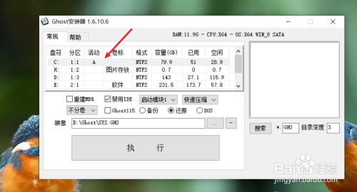 打开GHOST安装器之后,先要选择系统存放的硬盘;