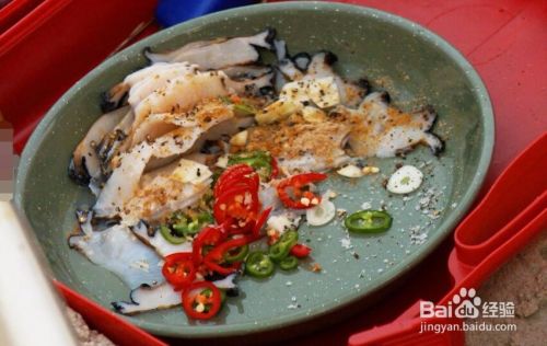鲍鱼切片之后也可以进行炒菜,鲍鱼片加上辣椒、蒜末、大葱直接爆炒,然后加入五香粉,少量的盐、海鲜酱油即可出锅。