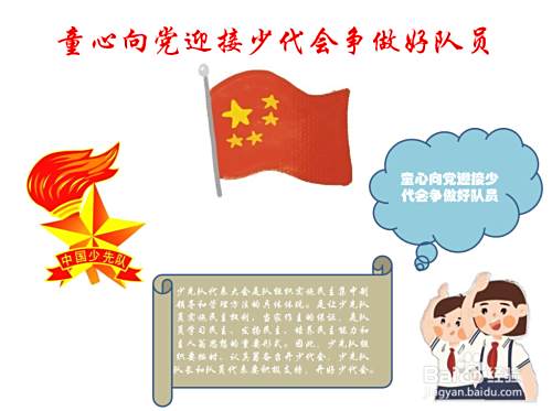然后在右上方内容框里写上“童心向党迎接少代会争做好队员”,