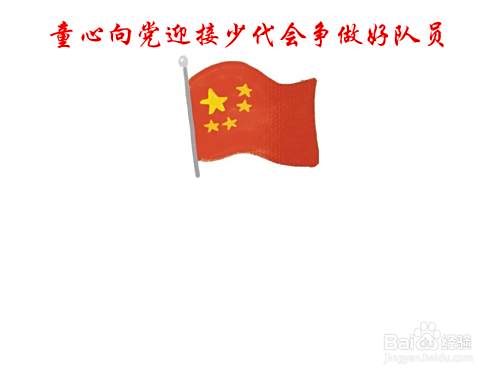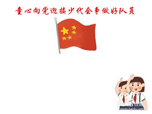 右下方画上两个戴红领巾的少先队员向国旗敬礼,