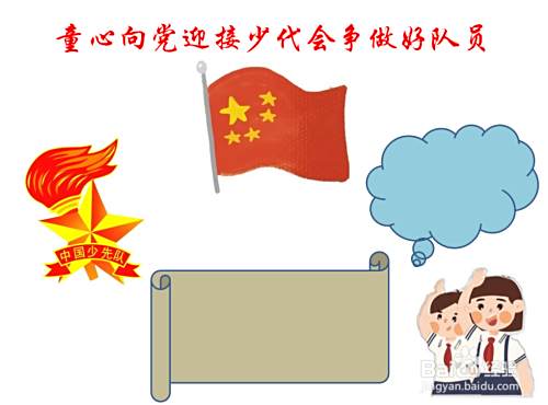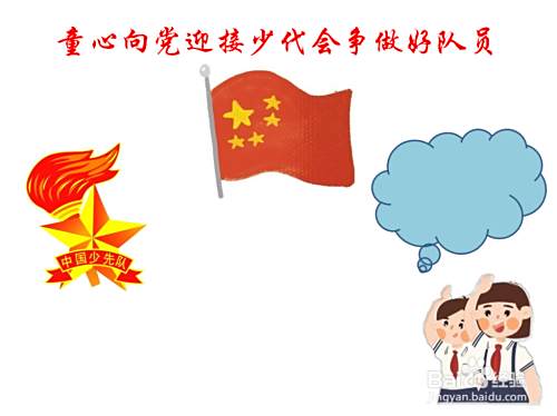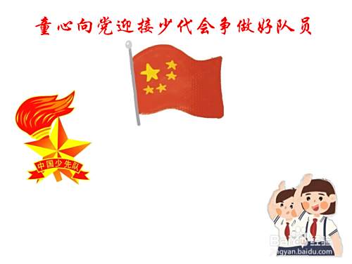 首先我们在上方写上主题“童心向党迎接少代会争做好队员”,