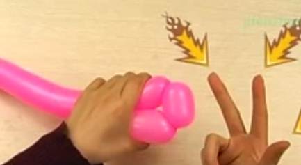 最后用右手食指同时将此气泡轻轻勾出,将气球旋转两圈后右手放开。熊耳结就出现了。