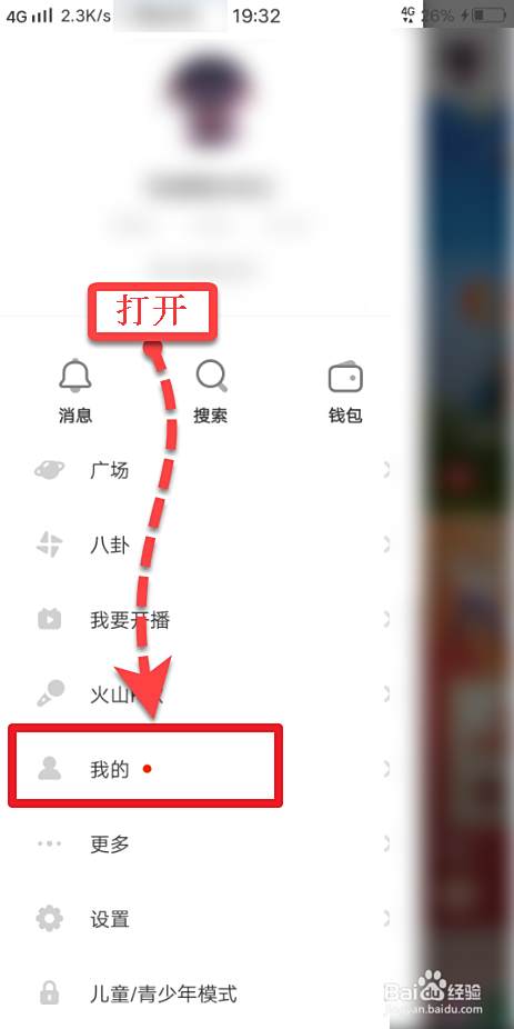 ①:打开并登陆火山小视频、点击左上角个人头像。