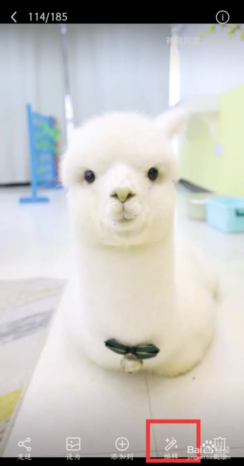 在相册中找到要添加文字的相片,单击使图片下方出现如图所示字样,点击“编辑”