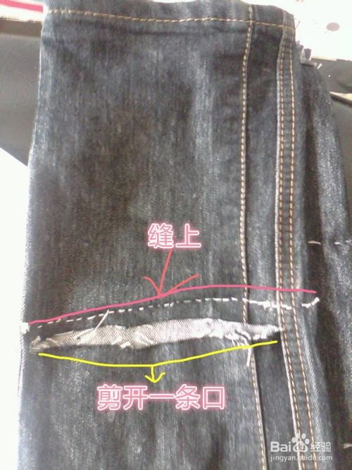 然后在一条裤腿上分别缝上想要小大的收纳口,如果想要放牙膏,就剪得比牙膏长度小一点,放更小的东西,可以缝更小的口袋,完全根据自己的大小缝和剪