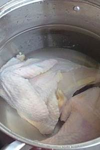 母鸡半只,泡去血水后跟清水一起下锅煮3-4小时。(尽量买打野的活鸡现杀,这种鸡肉紧实醇香。不像菜场的分割鸡,鸡肉松散没味。)