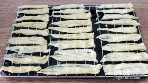 挑出来的腐皮放到晾架上晾干,放好后就不要再动它了,这半锅豆浆可以出四十张左右的腐皮