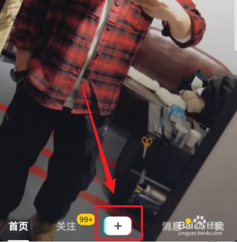 进入抖音后,在应用下方,我们选择加号来到视频拍摄的界面。