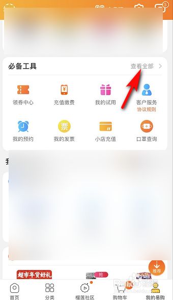 2、在我的易购中,点击必备工具旁的【查看全部】。
