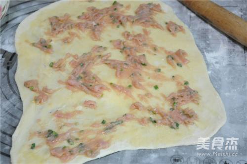 6将肉泥抹在面片上