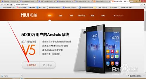 然后我们看左上角有个miui,点击那个就是的。这个小米官方的miui服务网址,静茹这个界面会有许多小米软件服务