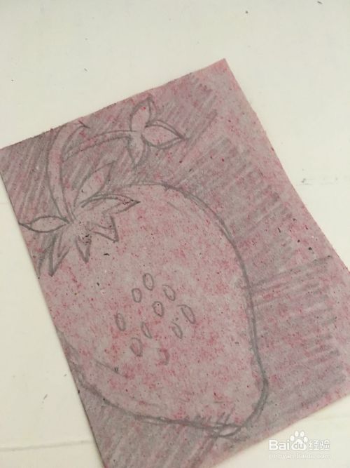第二步 折叠完之后竖起来 双边在左 拿起绘图铅笔画上一只完整的草莓草图外线轮廓