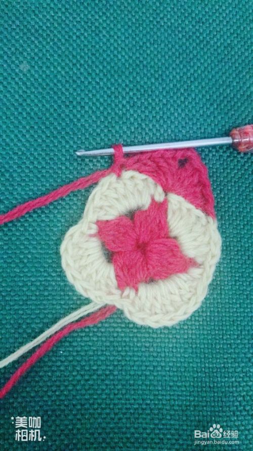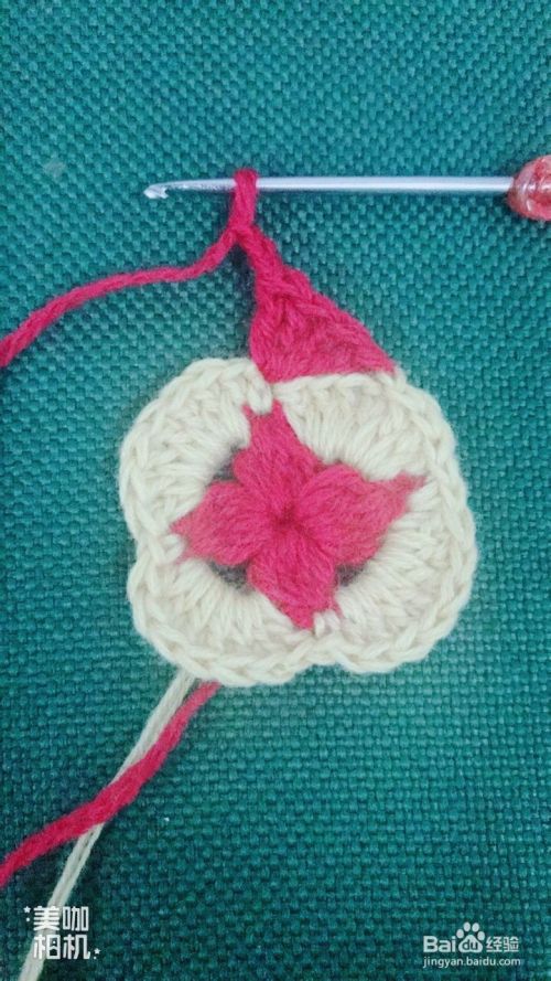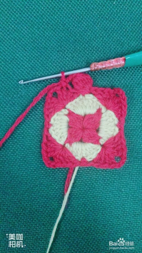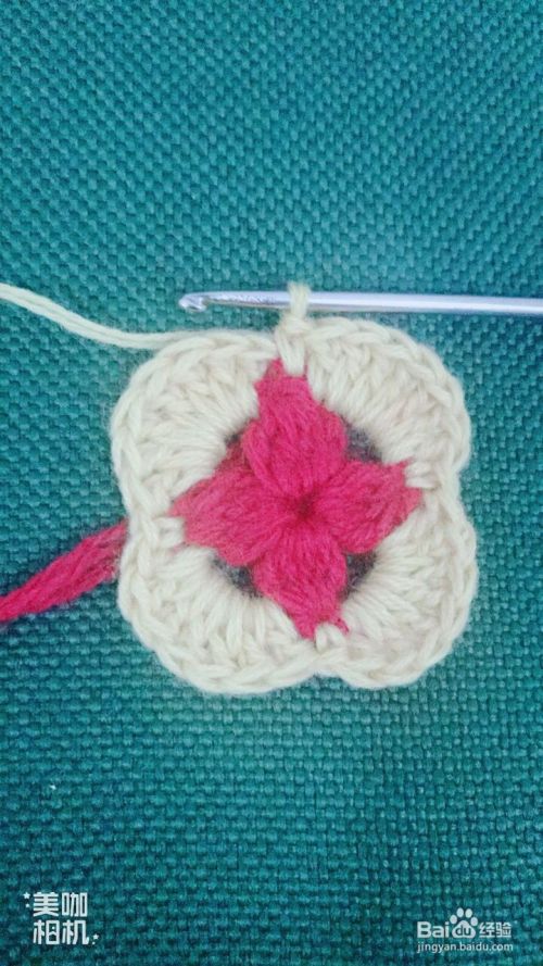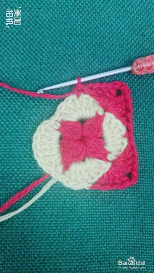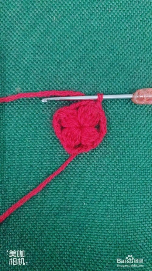 按照第7、8步骤循环钩出4个红色花瓣。这样钩出一个漂亮的小正方形。