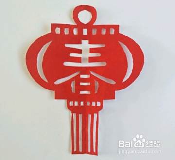 在春字的旁边画一个月牙纹,下方画几个小的方形图案,把流苏装饰一下 ,用剪刀把上部的图案给剪出来即可