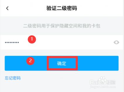 进入二级密码验证界面,输入二级密码后点击【确定】