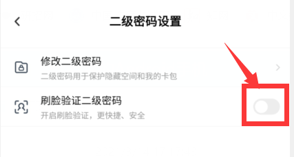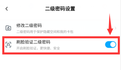 点击【刷脸验证二级密码】右侧开关
