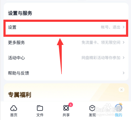 在我的界面中选择【设置】