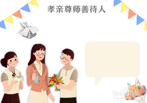 在文字的左右侧,画上三角形彩旗,进行装饰